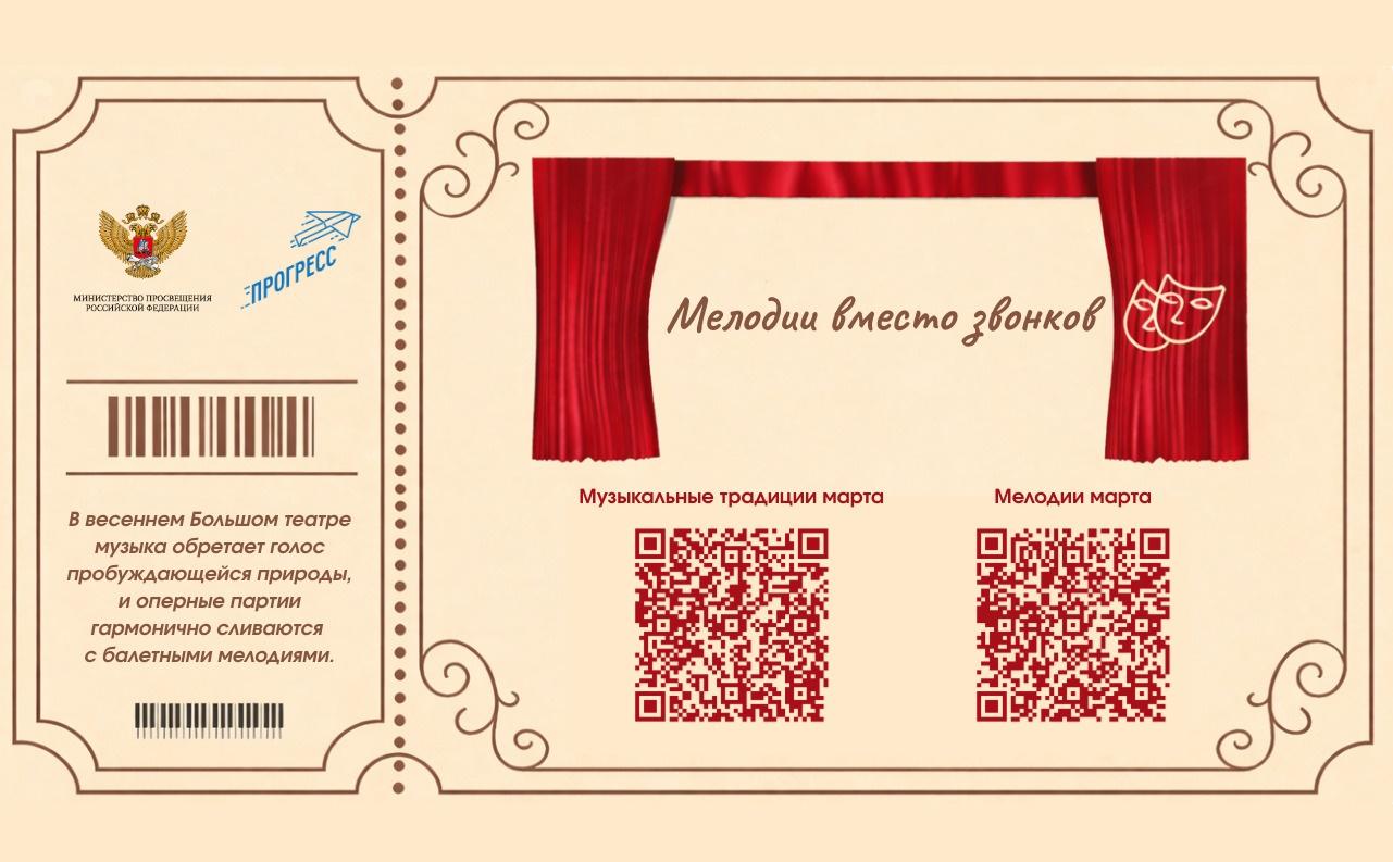 Также в марте для учеников будут звучать мелодии, исполненные победителями Всероссийского конкурса инструментального и изобразительного искусства «Мелодии вместо звонков» 2025 года.
